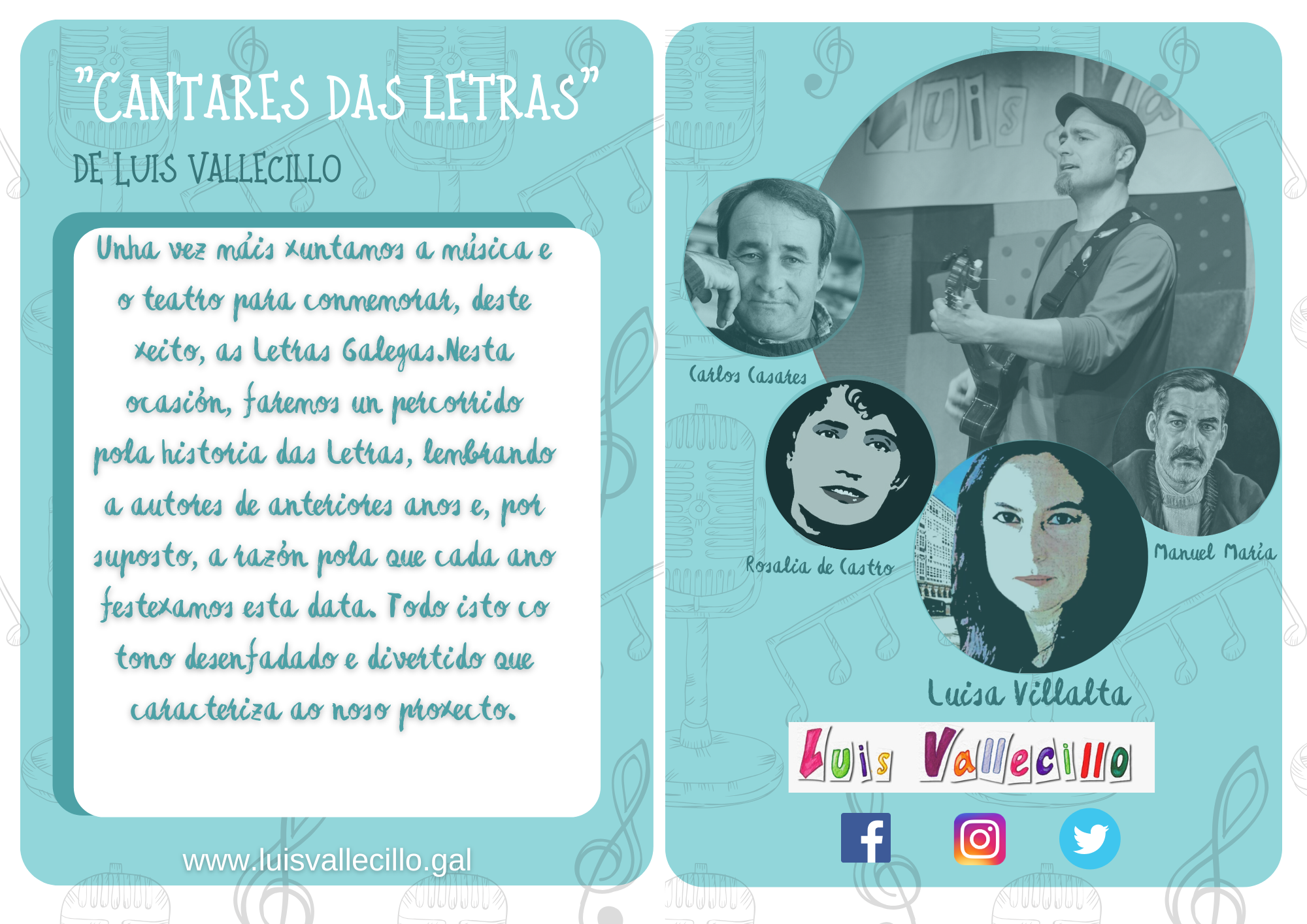 Nesta ocasión, tamén faremos un percorrido pola historia das Letras Galegas, lembrando a autores de anteriores anos e, por suposto, a razón pola que cada ano festexamos esta data. Todo isto co tono desenfadado e divertido que caracteriza ao noso proxecto. Cunha duración de 45 minutos aprox.